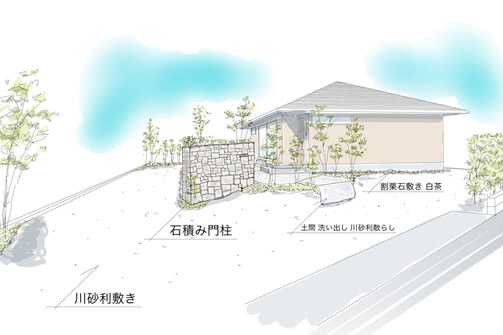 お客様の思い描くお庭のイメージを丁寧にヒアリングし、手描きパース図面を作成します。