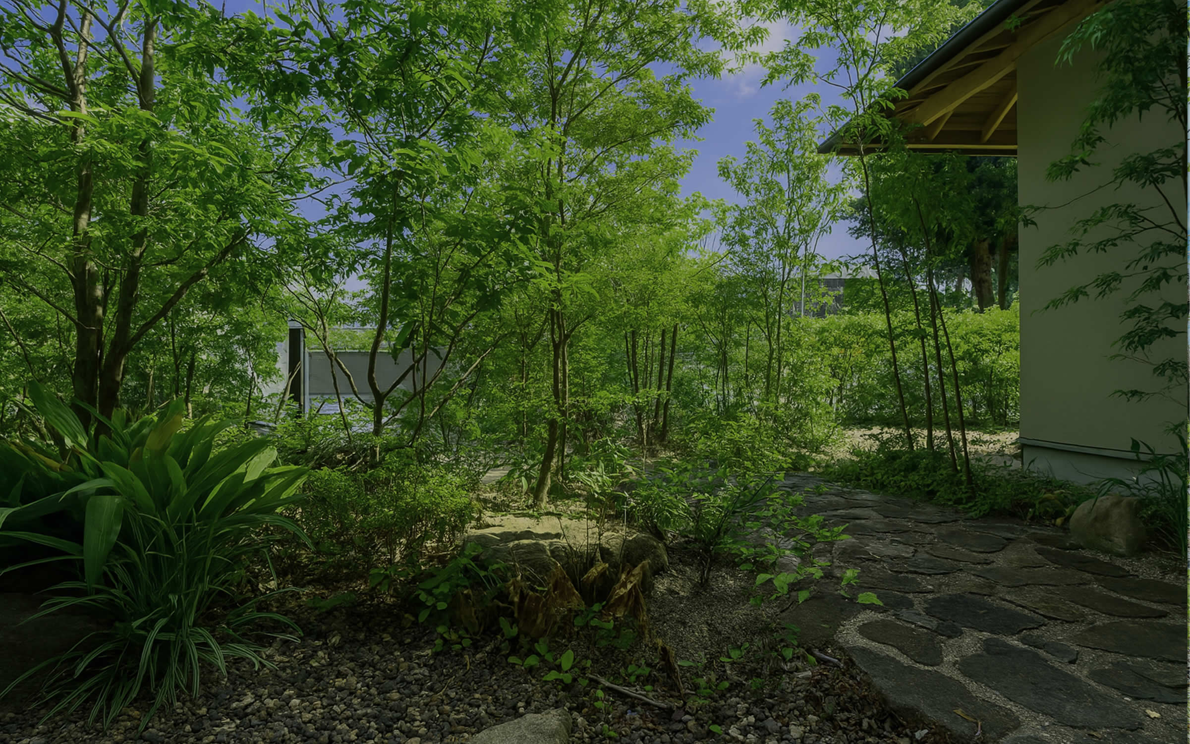 素材と植栽が時間とともに馴染み、建物と自然がほどよく重なり合う空間に仕上げました。