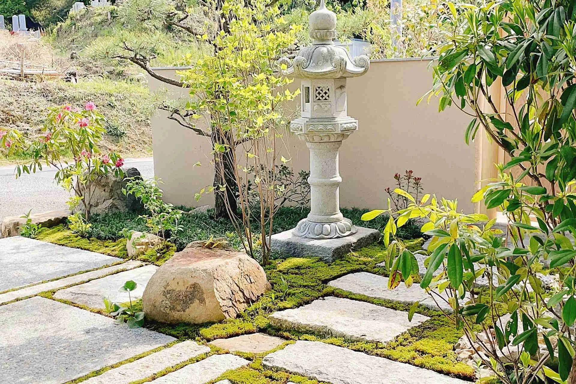 石、苔、砂利、水などを使い、自然の景観を凝縮して表現する日本伝統の庭。季節の移ろいや風情を感じられ、落ち着いた雰囲気が魅力です。飛び石や灯篭、つくばいなどを配し、凛とした美しさと静けさを演出します。和室や古民家風の住まいとも相性抜群です。